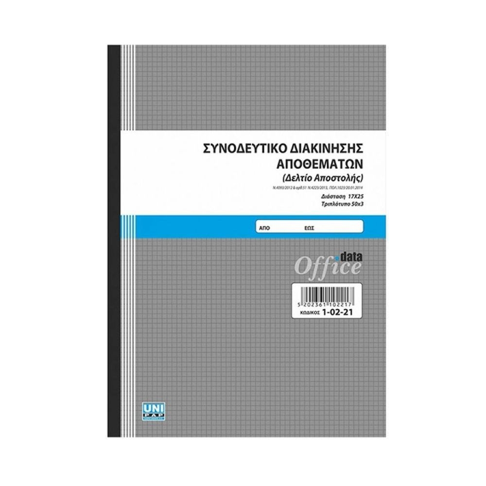 Συνοδευτικό Διακίνησης Αποθεμάτων(Δελτίο Αποστολής)  με τριπλότυπο αυτογραφικό χαρτί (1 πρωτότυπο και 2 αντίγραφα) από την Uni Pap.