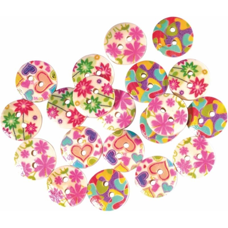 Ξύλινα κουμπιά τυπωμένα με διάφορα σχέδια, για ατελείωτες χειροτεχνίες. Βάλτε τη φαντασία σας και τελειοποιήστε τις δημιουργίες σας.