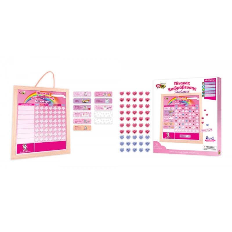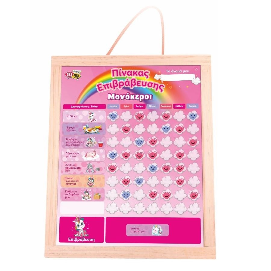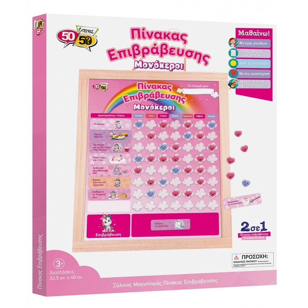Ξύλινος Μαγνητικός πίνακας & Ασπροπίνακας Επιβράβευσης - Μονόκεροι - 50/50Games