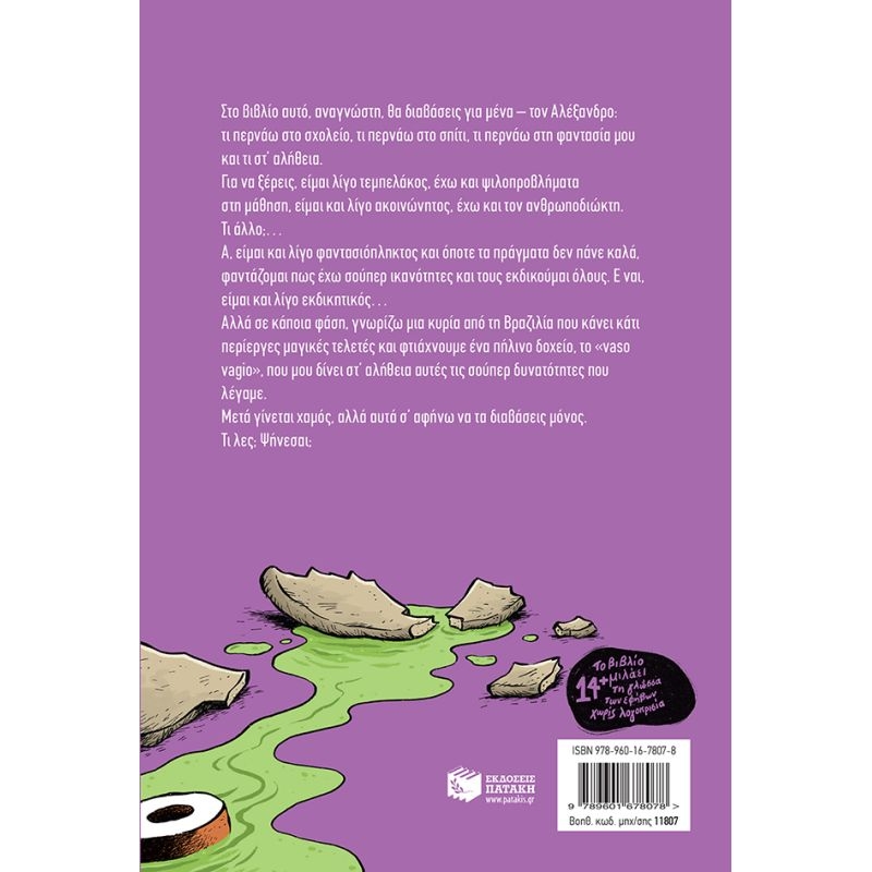 Αλλά σε κάποια φάση, γνωρίζω µια κυρία από τη Βραζιλία που κάνει κάτι περίεργες µαγικές τελετές και φτιάχνουµε ένα πήλινο δοχείο, το «vaso vagio», που µου δίνει στ’ αλήθεια αυτές τις σούπερ δυνατότητες που λέγαµε. Μετά γίνεται χαµός, αλλά αυτά σ’ αφήνω να τα διαβάσεις µόνος. Τι λες; Ψήνεσαι;