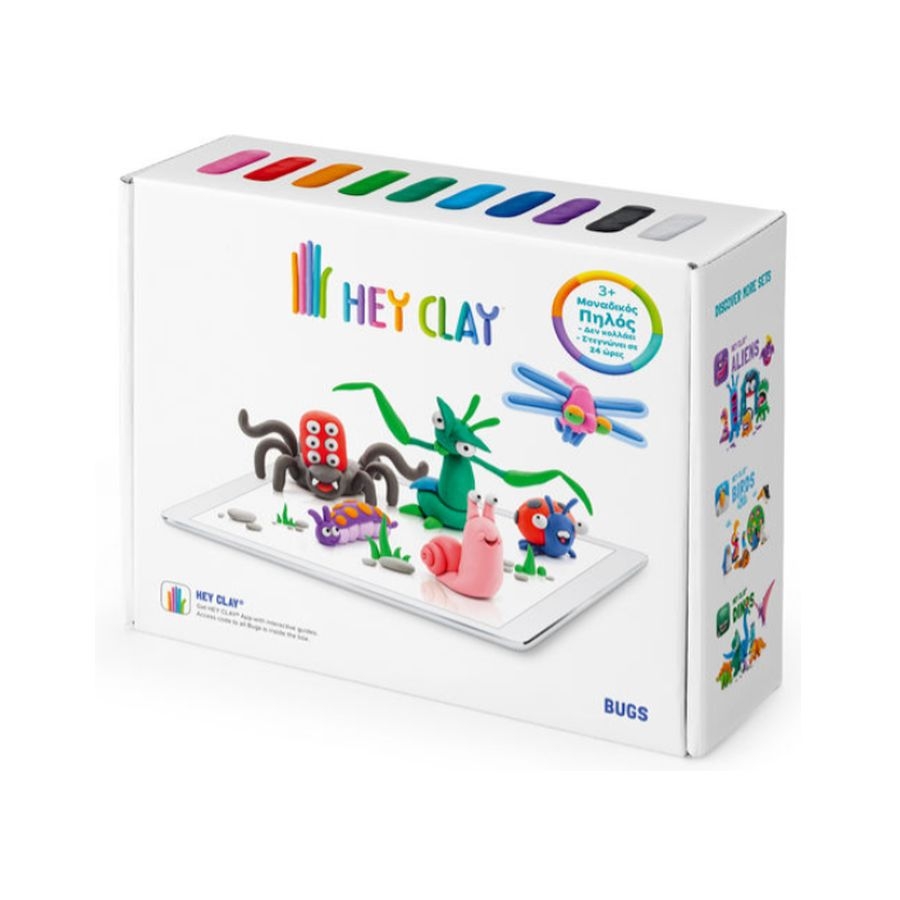 Κατασκευάστε τα έντομα, αφήστε 20 λεπτά το πηλό να σταθεροποιηθεί και μετά από 24 ώρες θα έχει μετατραπεί σε ένα καινούργιο παιχνίδι. Κατεβάστε την εφαρμογή για κινητά και έξυπνες συσκευές για να βρείτε οδηγούς δημιουργίας και διάφορα υπέροχα κινούμενα σχέδια τα οποία θα καθοδηγούν τα παιδιά στο να δημιουργούν ευφάνταστους και πρωτότυπους χαρακτήρες-έντομα. Η σειρά προϊόντων Hey Clay δημιουργήθηκε για να αναπτύξει τις δεξιότητες των παιδιών και να τα βοηθήσει να να καλλιεργήσουν την δημιουργική τους σκέψη.