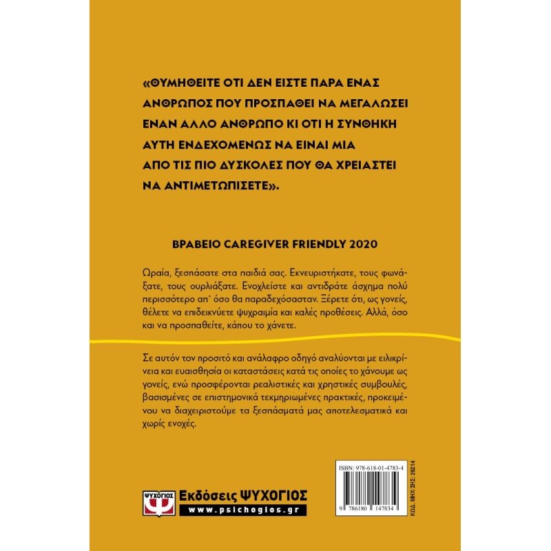 Σε αυτόν τον προσιτό και ανάλαφρο οδηγό αναλύονται με ειλικρίνεια και ευαισθησία οι καταστάσεις κατά τις οποίες το χάνουμε ως γονείς, ενώ προσφέρονται ρεαλιστικές και χρηστικές συμβουλές, βασισμένες σε επιστημονικά τεκμηριωμένες πρακτικές, προκειμένου να διαχειριστούμε τα ξεσπάσματά μας αποτελεσματικά και χωρίς ενοχές.