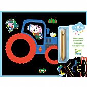 Ξύστε την εικόνα και ανακαλύψτε πολλά οχήματα με τις πρωτότυπες χειροτεχνίες της εταιρείας Djeco! Ξύνοντας την εικόνα με το ειδικό μολύβι, ιδανικά σχεδιασμένο για τις μικρές ηλικίες, αποκαλύπτονται τα χρώματα που κρύβονται από κάτω και δημιουργούνται πανέμορφα έργα για να στολίσετε το δωμάτιο σας. Η ιδιαίτερη αυτή ενασχόληση ενισχύει τη λεπτή κινητικότητα του παιδιού, την αισθητική νοημοσύνη και τη φαντασία του. Ιδανικό για το ταξίδι και τη βόλτα.