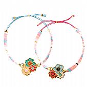 Περιλαμβάνει: 2 κάρτες, 2 θήκες αποθήκευσης για τα βραχιόλια, 4 λουλούδια, 2 σχοινάκια, 2 βελόνες και 102 χάντρες διαφόρων σχεδίων και χρωμάτων.
