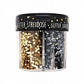 Συνολικά έξι διαφορετικά χρώματα και σχήματα από στρασάκια που λάμπουν, σε αλατιέρα, για να κάνετε τις πιο διασκεδαστικές δημιουργίες.