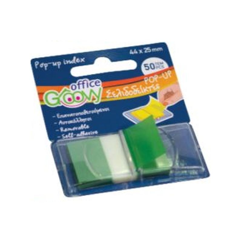 Αυτοκόλλητοι σελιδοδείκτες σε πλαστική θήκη - 50 Πράσινα χαρτάκια (4.4x2.5) - Groovy Office