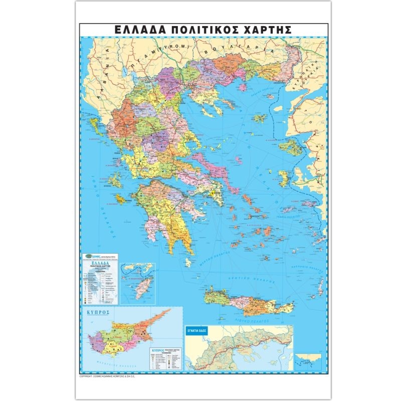 Πολιτικός χάρτης της Ελλάδας & Κύπρου - Πλαστικοποιημένος (68x44εκ.)
