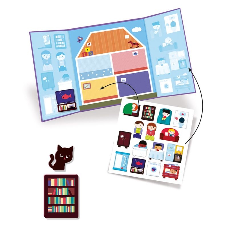 Ντύνω & μαθαίνω με αυτοκόλλητα τρίπτυχο - Χώροι σπιτιού - Djeco
