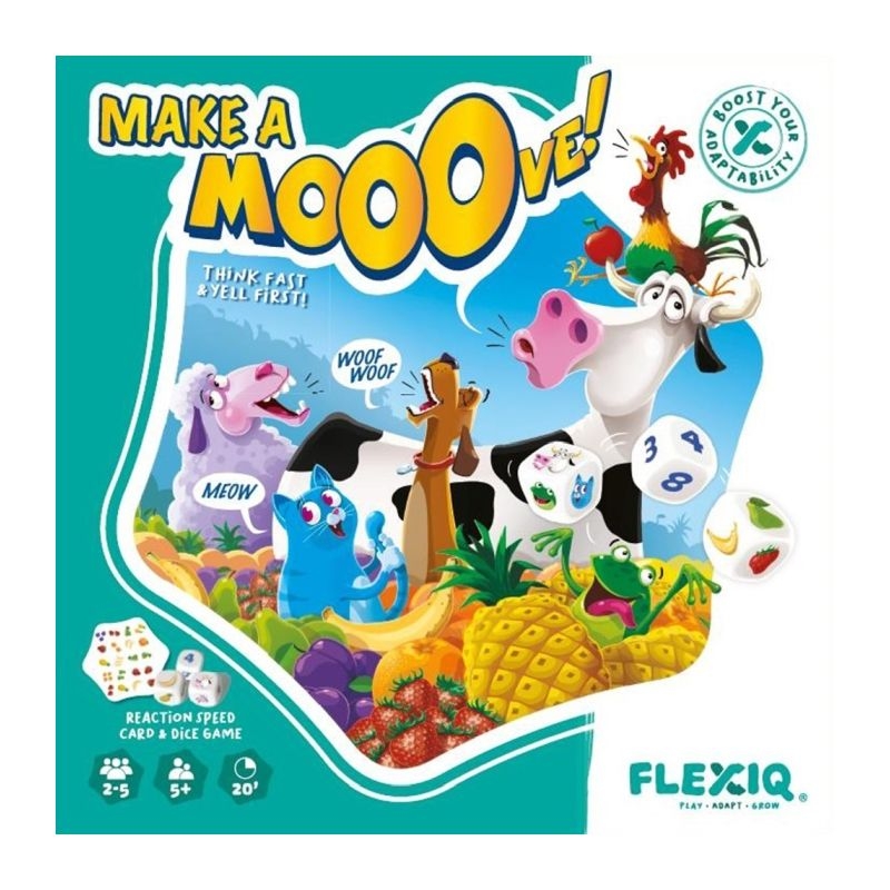 Επιτραπέζιο παιχνίδι στρατηγικής "Κάνε μία κίνηση" από τη συλλογή επιτραπέζιων της FlexiQ, που ενδυναμώνουν την αντίληψη, τον στρατηγικό τρόπο σκέψης, ενώ εστιάζουν στην ταχύτητα αντίδρασης των παιδιών. Οι παίκτες μπορούν να ξεκινήσουν με το επίπεδο 3 ζαριών. Ρίχνουν τα ζάρια και ανοίγουν μια κάρτα. Έπειτα προσπαθούν να πουν πιο γρήγορα το όνομα του φρούτου ή να μιμηθούν τον ήχο του ζώου στο ζάρι για να κερδίσουν την κάρτα. Εξετάζουν πολλαπλές επιλογές και κάνουν τις σωστές συνδέσεις. Μπορούν να χρησιμοποιήσουν και τα 4 ζάρια για ακόμα πιο συναρπαστικό παιχνίδι. Όποιος παίκτης συλλέξει τις περισσότερες κάρτες, στέφεται μεγάλος νικητής.