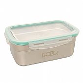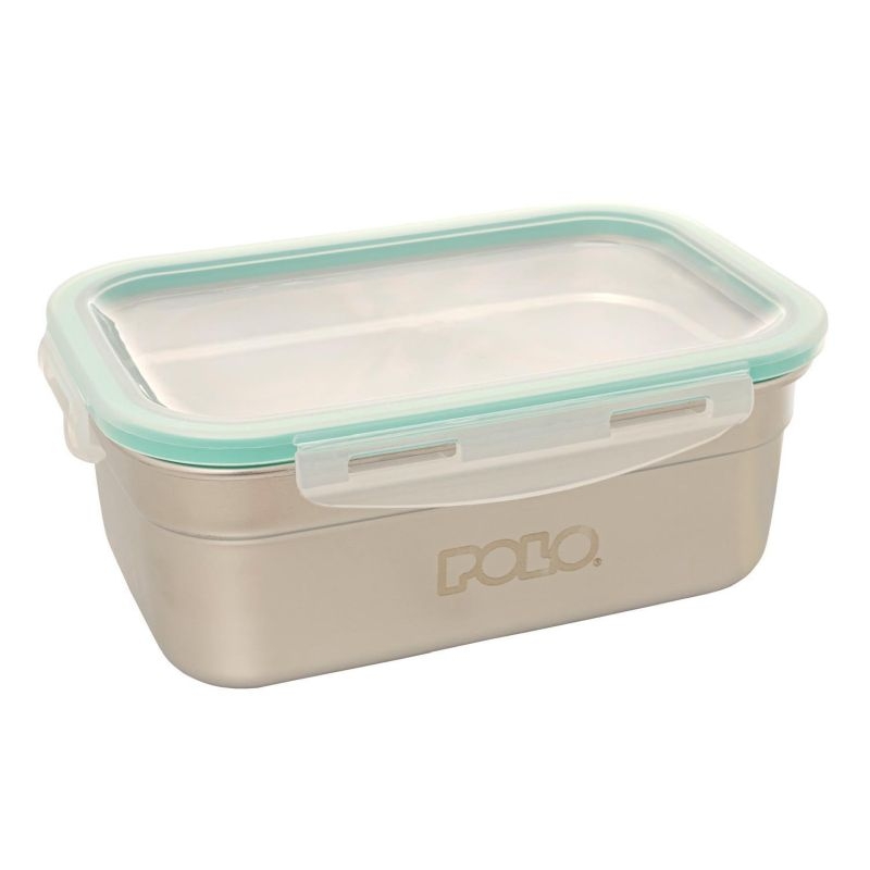 Το δοχείο φαγητού της εταιρείας Polo είναι κατασκευασμένο από inox, ένα υλικό που το κάνει ελαφρύ, εύκολο στη μεταφορά και ανθεκτικό, δεν είναι όμως κατάλληλο για φούρνο μικροκυμάτων. Είναι εύκολο στο καθάρισμα και έχει αντιβακτηριδιακές ιδιότητες.
