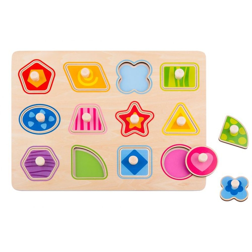 Ξύλινα εκπαιδευτικά σφηνώματα σε ποικίλα από γεωμετρικά σχήματα και ζωηρά χρώματα, ιδανικά για την ανάπτυξη των κινητικών δεξιοτήτων και τον συγχρονισμό ματιού-χεριού