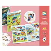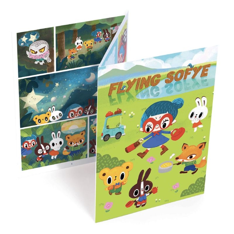 Χρησιμοποιήστε την φαντασία σας και δημιουργήστε εικόνες με τις χαλκομανίες της εταιρίας Djeco! Φτιάξτε την ιστορία της ιπτάμενης Σοφί, μεταφέροντας τις φιγούρες που θα βρείτε στη συσκευασία. Επιλέξτε την εικόνα που θέλετε, τοποθετήστε την πάνω στο χαρτί και ξύστε την με ένα μολύβι. Η εικόνα θα αποτυπωθεί στο φόντο που έχετε επιλέξει! Ένας εξαιρετικός τρόπος πρώιμης εισαγωγής στον κόσμο των κόμικς!
