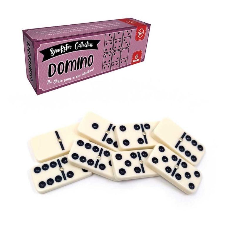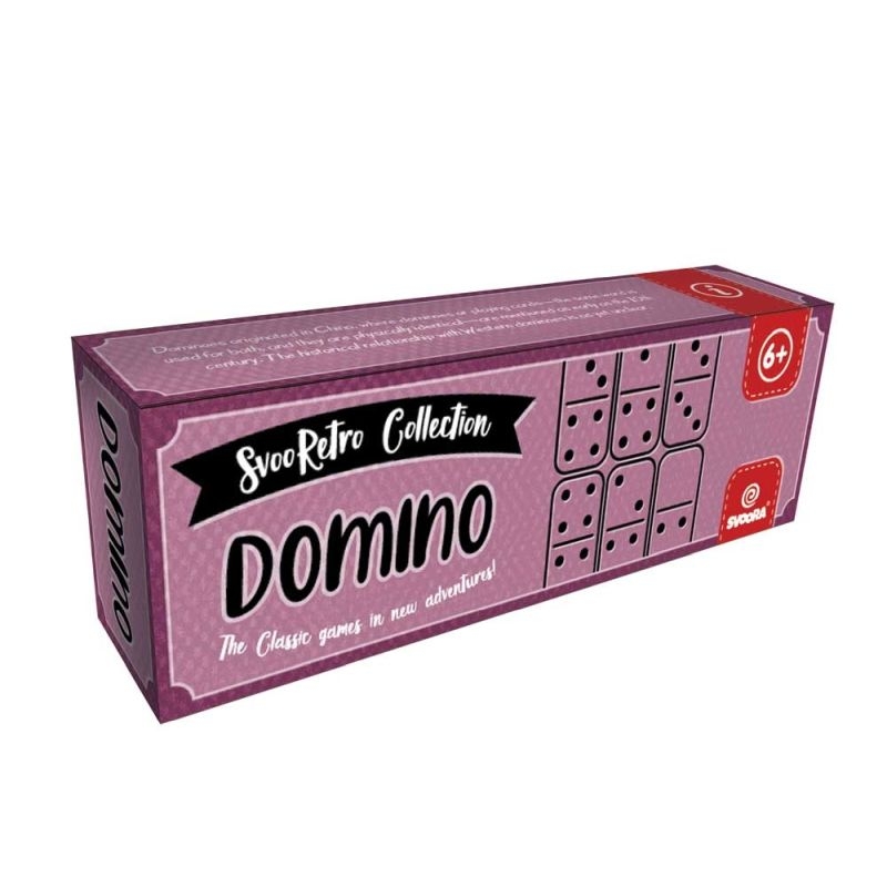 Το κλασικό παιχνίδι 'Ντόμινο' από την εταιρεία SVOORA, έρχεται με ανανεωμένη εμφάνιση στη σειρά SvooRetro. Πρόκειται για το πασίγνωστο οικογενειακό παιχνίδι με τα κοκκάλινα αριθμημένα κομμάτια που βοηθάει στη στρατηγική σκέψη, στην κοινωνικοποίηση και στην εξοικείωση με τους αριθμούς. Αποτελείται από μια χρωματιστή ρετρό συσκευασία που περιέχει 28 κομμάτια, τα οποία μπορούν και να τοποθετηθούν όρθια το ένα πίσω από το άλλο, προσφέροντας ένα μοναδικό σόου όταν καταρρέουν.
