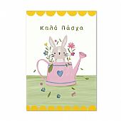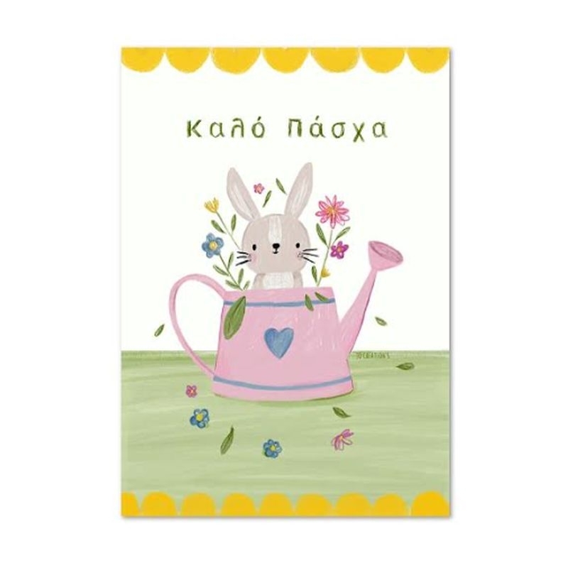 Χειροποίητη ευχετήρια κάρτα με Φάκελο - Καλό Πάσχα (Κουνέλι σε ποτιστήρι/11x15.5) - J.o. Creations