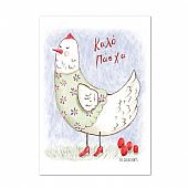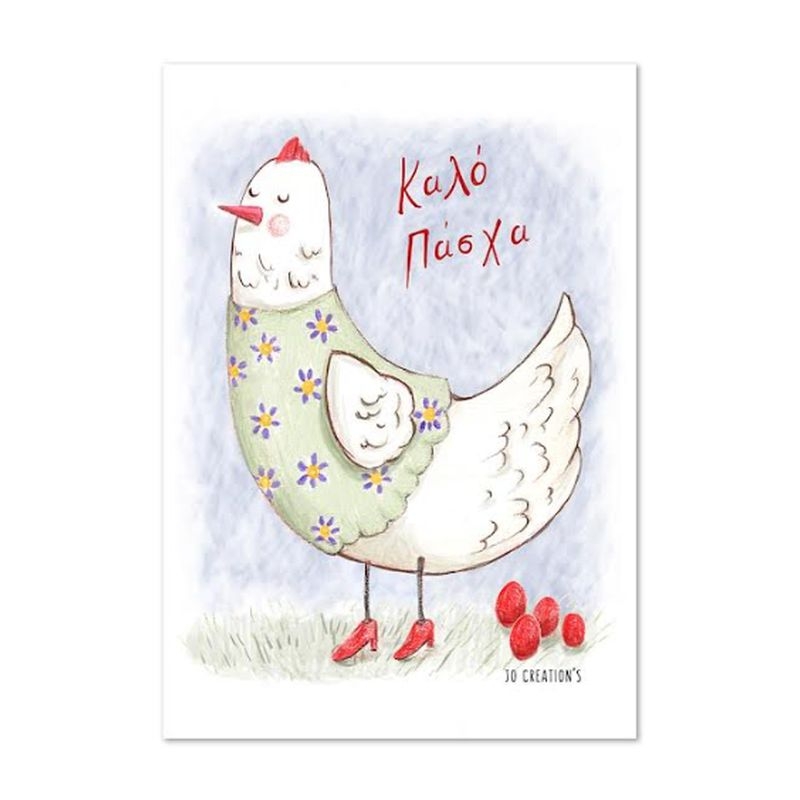 Χειροποίητη ευχετήρια κάρτα με Φάκελο - Καλό Πάσχα (Κότα με γοβάκια/11x15.5) - J.o. Creations