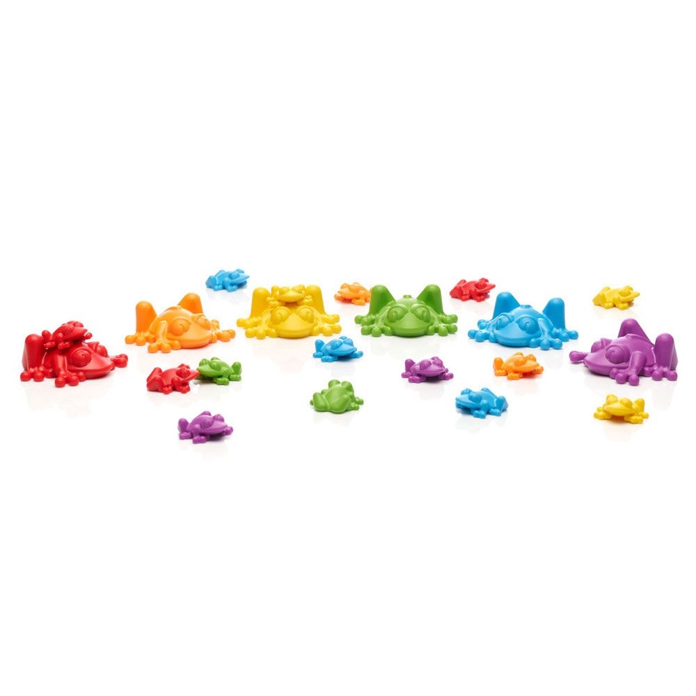 Περιλαμβάνει: Tαμπλό παιχνιδιού, 1 ψάρι, 6 οικογένειες βατράχων σε διαφορετικά χρώματα, εγχειρίδιο οδηγιών.