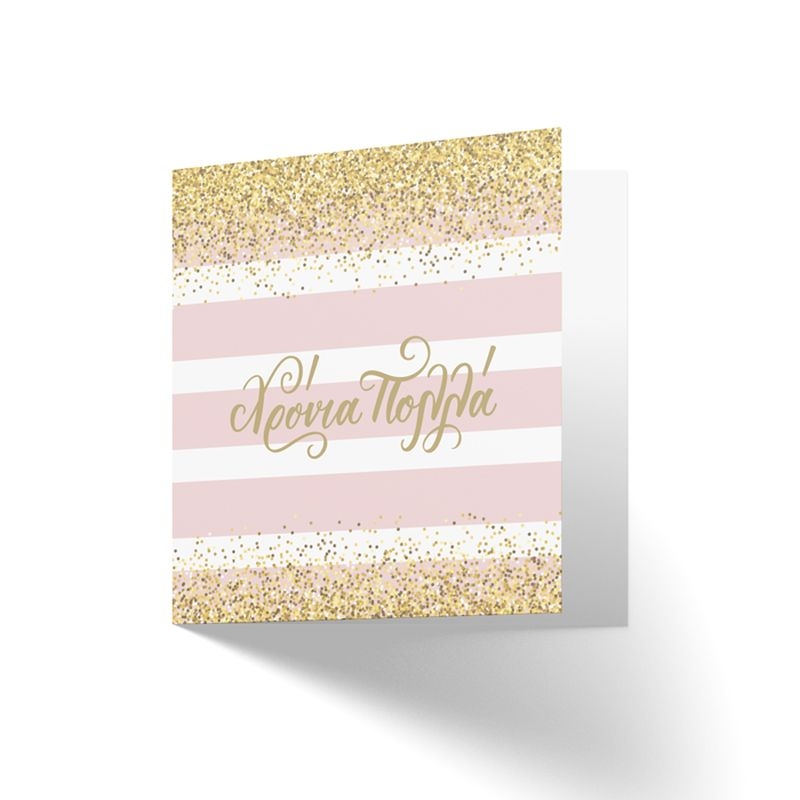Χάρισε μία ευχετήρια κάρτα στα αγαπημένα σου πρόσωπα, γράφοντας ευχές για τη μοναδικότητα της ημέρας αυτής. Η κάρτα έχει λεκτικό "Χρόνια Πολλά" είναι ανάγλυφη και επίχρυση και στο εξώφυλλο και χώρο στο εσωτερικό της για να αναπτύξετε τις ευχές σας.