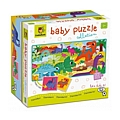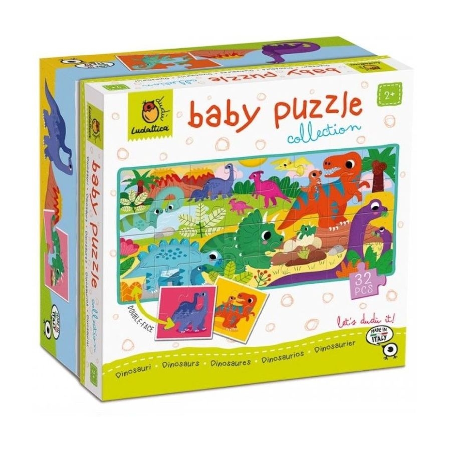 Ένα πρωτότυπο παζλ με 32 κομμάτια διπλής όψεως για τους μικρούς μας φίλους! Από την μία πλευρά, το παιδί συνθέτει 8 παζλ με τους δεινοσαύρους και τα μωρά δεινοσαυράκια τους, και από την άλλη πλευρά, όλα μαζί τα κομμάτια μπορούν να συνθέσουν μια μεγάλη εικόνα, με όλους τους δεινοσαύρους μαζί! Έτσι το παιδί μπορεί να ξεκινήσει με τα μικρότερα παζλάκια και σταδιακά να μεταβεί στην ολοκλήρωση του μεγαλύτερου, αναπτύσσοντας τη συγκέντρωση, την παρατηρητικότητα και τη λογική σκέψη του!