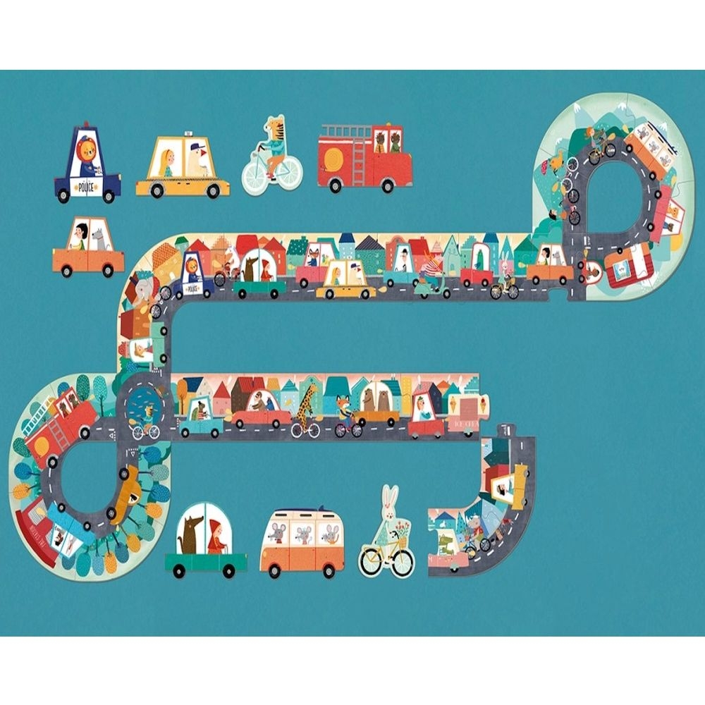 Ένα φανταστικό παζλ 24 κομματιών, που σχηματίζει έναν αυτοκινητόδρομο στον οποίο ταξιδεύουν όλοι οι μικροί μας φίλοι. Συνθέστε την εικόνα, και στη συνέχεια διασκεδάστε, προσπαθώντας να εντοπίσετε σε αυτήν, τα δέκα διαφορετικά οχήματα. Το παιχνίδι έχει σχεδιαστεί ώστε να βοηθά τα παιδιά να αναπτύξουν την λογική τους σκέψη, εξασκώντας παράλληλα την παρατηρητικότητά τους.