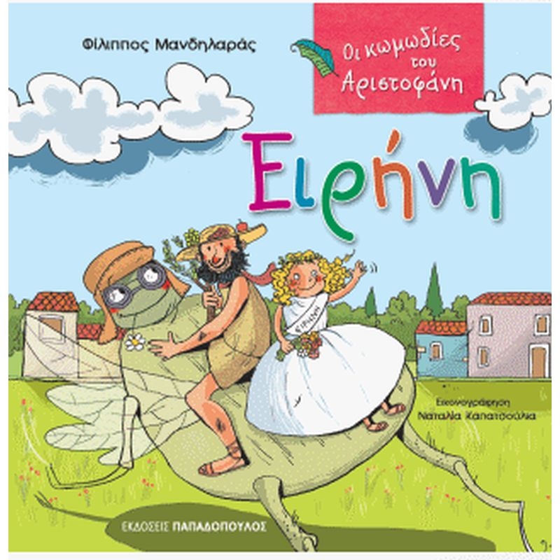 Οι κωμωδίες του Αριστοφάνη: ΕιρήνηΜια σύγχρονη προσέγγιση των κωμωδιών του Αριστοφάνη που διασκευάζει με έμπνευση ο Φίλιππος Μανδηλαράς ειδικά για παιδιά προσχολικής και πρωτοσχολικής ηλικίας και εικονογραφεί με πολύ χιούμορ η Ναταλία Καπατσούλια.Με πληροφορίες για την κάθε κωμωδία, καθώς και την εποχή που γράφτηκε.
