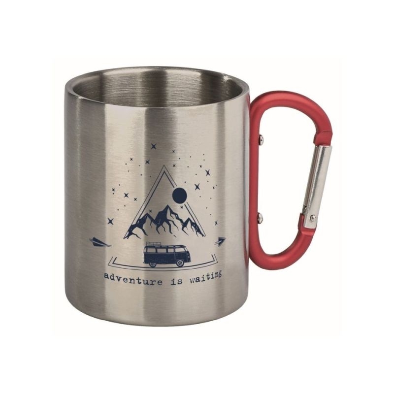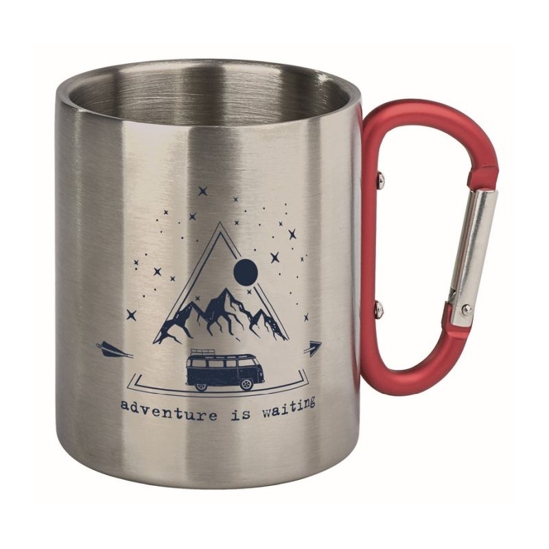 Κούπα με Karabiner από ανοξείδωτο ατσάλι της εταιρείας Moses που επιτρέπει ροφήματα εν κινήσει. Κοσμείται με την εκτύπωση ενός ορεινού τοπίου που περιλαμβάνει έναν έναστρο ουρανό και ένα λεωφορείο κάμπινγκ και τις λέξεις “Adventure is waiting”. Κατασκευασμένη από μέταλλο, κάτι που καθιστά την κούπα ιδιαίτερα ελαφριά ενώ παράλληλα είναι ιδανική επιλογή για να την παίρνετε μαζί σας οπουδήποτε, αφού διαθέτει υψηλή αντοχή και δεν υπάρχει φόβος να προκληθούν φθορές. Χάρη στο πρακτικό karabiner σε έντονο κόκκινο χρώμα, μπορεί να στερεωθεί σε σακίδιο ή σε εξοπλισμό σε χρόνο μηδέν!!