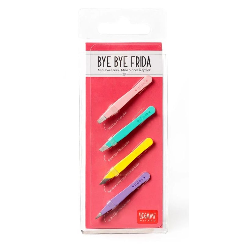 Διώξτε αυτό το μονοφρύδο με το σετ μίνι τσιμπιδάκια Legami Bye Bye Frida. Διαθέτοντας 4 διαφορετικές άκρες για κάθε ανάγκη: επίπεδη μύτη, λοξή μύτη, μυτερή λοξή μύτη και μύτη σε ποικιλία όμορφων χρωμάτων, θα μπορείτε να βγάζετε κάθε τρίχα από τα φρύδια σας προσεκτικά και εύκολα.