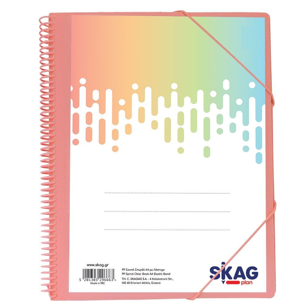 Premium ντοσιέ σουπλ σπιράλ pastel ροζ με 30 ενσωματωμένες διαφάνειες και λάστιχο για να κλείνει, της skag.