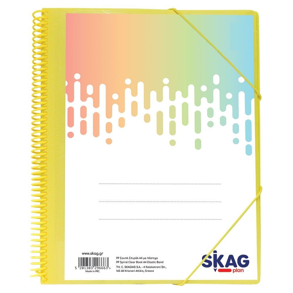 Premium ντοσιέ σουπλ σπιράλ pastel κίτρινο με 30 ενσωματωμένες διαφάνειες και λάστιχο για να κλείνει, της skag.