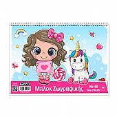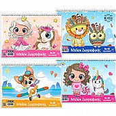 Μπλοκ ζωγραφικής σπιράλ A4, 40 φύλλων 70gr, σε 4 όμορφα σχέδια!