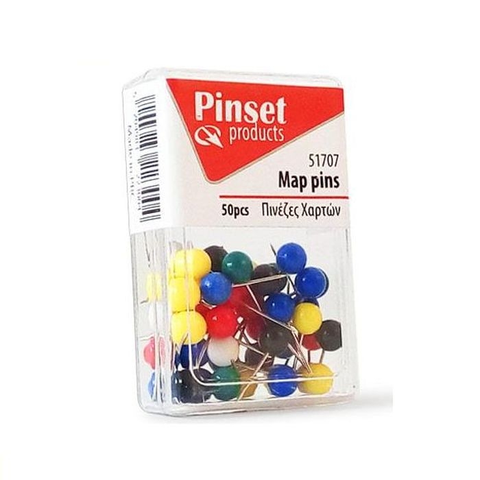 50 Πολύχρωμες πινέζες  χαρτών από την Pinset για να οργανώσετε τις σημειώσεις σας εύκολα και γρήγορα.