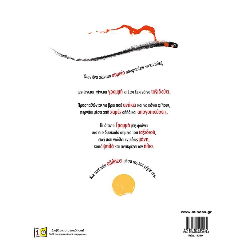 Όταν ένα ακίνητο σημείο αποφασίζει να κινηθεί, τεντώνεται, γίνεται γραμμή κι έτσι ξεκινά να ταξιδεύει. Προσπαθώντας να βρει πού ανήκει και να κάνει φίλους, περνάει μέσα από χαρές αλλά και απογοητεύσεις. Κι όταν η Γραμμή μας φτάνει στο πιο δύσκολο σημείο του ταξιδιού,