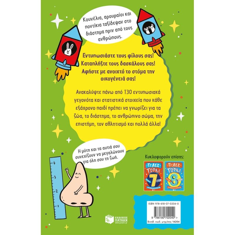 Ανακαλύψτε πάνω από 130 εντυπωσιακά γεγονότα και εντυπωσιακά στατιστικά στοιχεία που κάθε εξάχρονο παιδί πρέπει να γνωρίζει για τα ζώα, το διάστημα, το ανθρώπινο σώμα, την επιστήμη, τον αθλητισμό και πολλά άλλα!