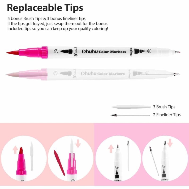 Art Markers: Σετ Μαρκαδόρων με Βάση το Νερό - Brush & Fineliner (120 Χρωμάτων) - Ohuhu
