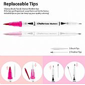 Η λεπτή μύτη (fine) 0,4 mm μπορεί να χρωματίσει λεπτομερώς τις μικρές περιοχές ενώ είναι επίσης κατάλληλη για γραφή και σκίαση με μέγιστη ακρίβεια. Η δεύτερη μύτη πινέλου (brush) 1-2 mm είναι ιδιαίτερα μαλακή και χάρη στη διάμετρό της μπορεί να καλύψει μεγάλες περιοχές και να χρησιμοποιηθεί για σκίαση, χρωματισμό, ανάμειξη και άλλα. Επιπλέον, η λεπτή μύτη είναι ιδανική για σημειώσεις, ενώ η μύτη πινέλου είναι πιο εύκολο να δημιουργήσει μοτίβα και σύμβολα καλλιγραφίας. Διακοσμήστε τις σημειώσεις σας και το bullet journal σας με τα μοναδικά χρώματα τις σειράς.