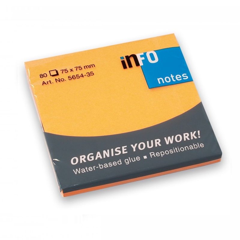 Αυτοκόλλητα Post it - 80 Neon πορτοκαλί χαρτάκια (7.5x7.5) - InfoNotes