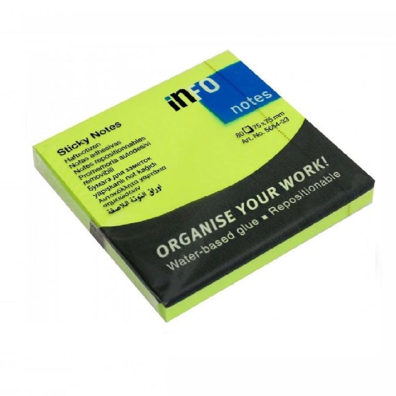 Αυτοκόλλητα Post it - 80 Neon πράσινα χαρτάκια (7.5x7.5) - InfoNotes