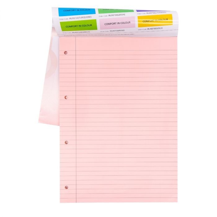 Κάθε μπλοκ περιλαμβάνει 100 σελίδες χρωματισμένο χαρτί 80 GSM και είναι σε μέγεθος Α4. Κάθε σημειωματάριο έχει διάτρηση 4 τρύπες που σημαίνει ότι μπορείτε να τοποθετήσετε κάθε σελίδα σε οποιοδήποτε τυπικό σύστημα αρχειοθέτησης.