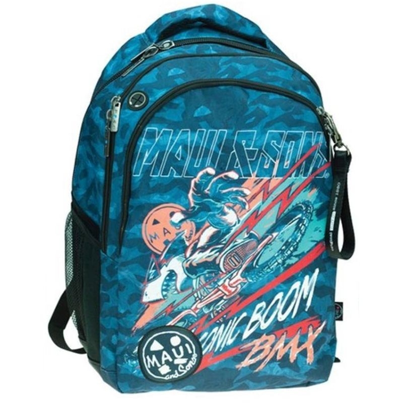 Σχολική τσάντα η οποία μπορεί να φορεθεί στην πλάτη, κατάλληλη για παιδιά γυμνασίου - λυκείου της εταιρίας Maui & Sons με ανατομική πλάτη.