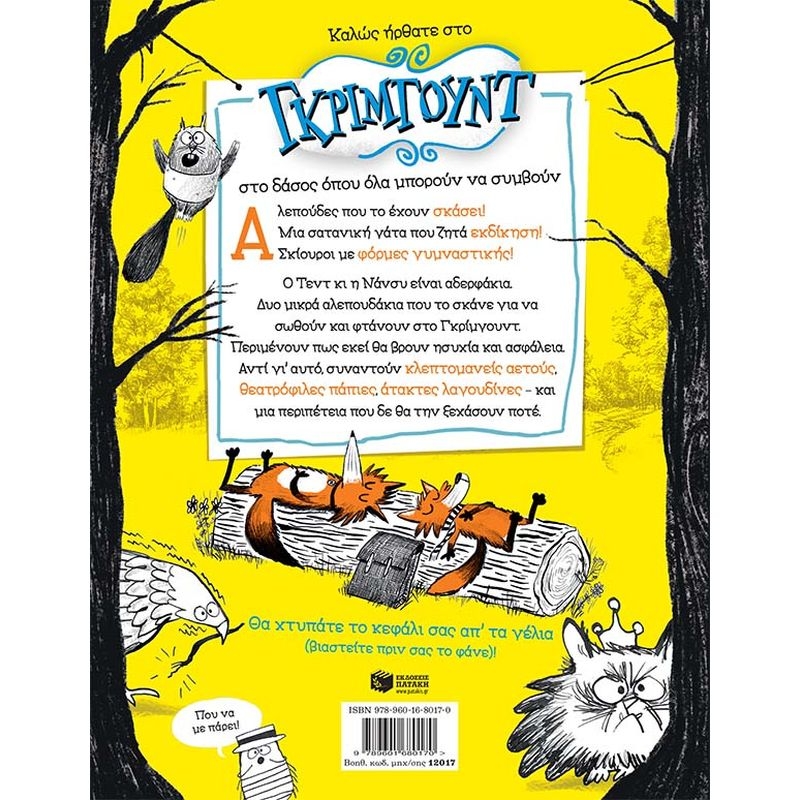 Ο Τεντ κι η Νάνσυ είναι αδερφάκια. Δυο μικρά αλεπουδάκια που το σκάνε για να σωθούν και φτάνουν στο Γκρίμγουντ. Περιμένουν πως εκεί θα βρουν ησυχία και ασφάλεια. Αντί γι’ αυτό, συναντούν κλεπτομανείς αετούς, θεατρόφιλες πάπιες, άτακτες λαγουδίνες – και μια περιπέτεια που δε θα την ξεχάσουν ποτέ.