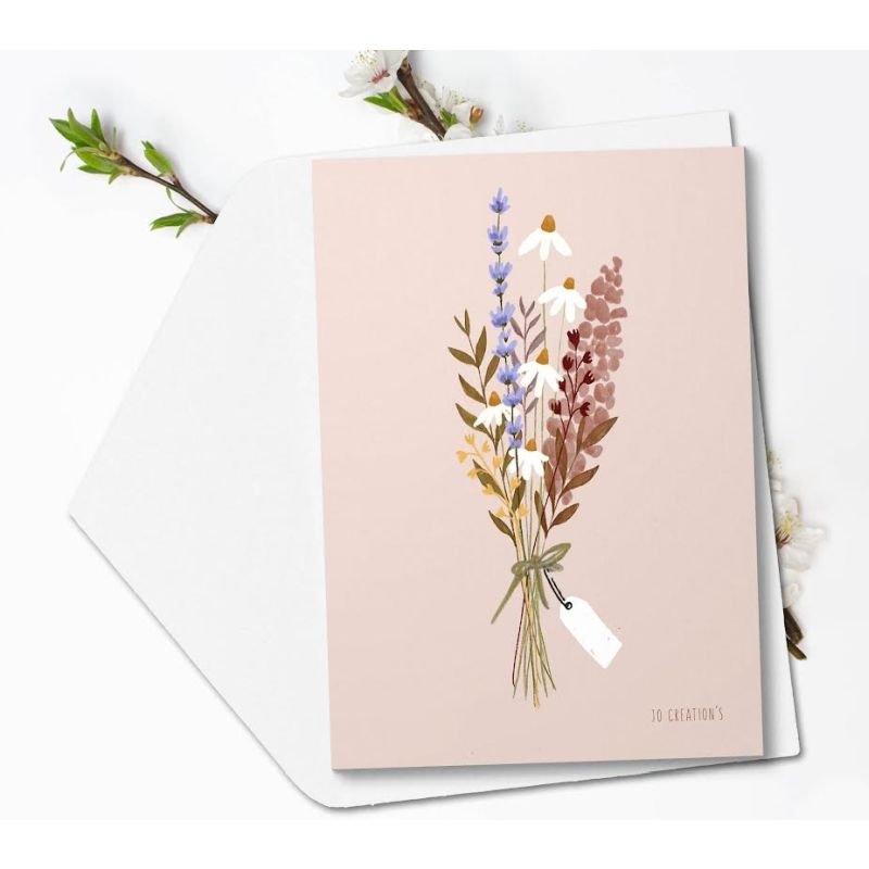 Χειροποίητη ευχετήρια κάρτα τυπωμένη σε χαρτί πολυτελείας ματ 300gr με σχεδιασμένο ένα όμορφο ανοιξιάτικο μπουκέτο. Ιδανική για τις ευχές σας, από την J.o. Creations.