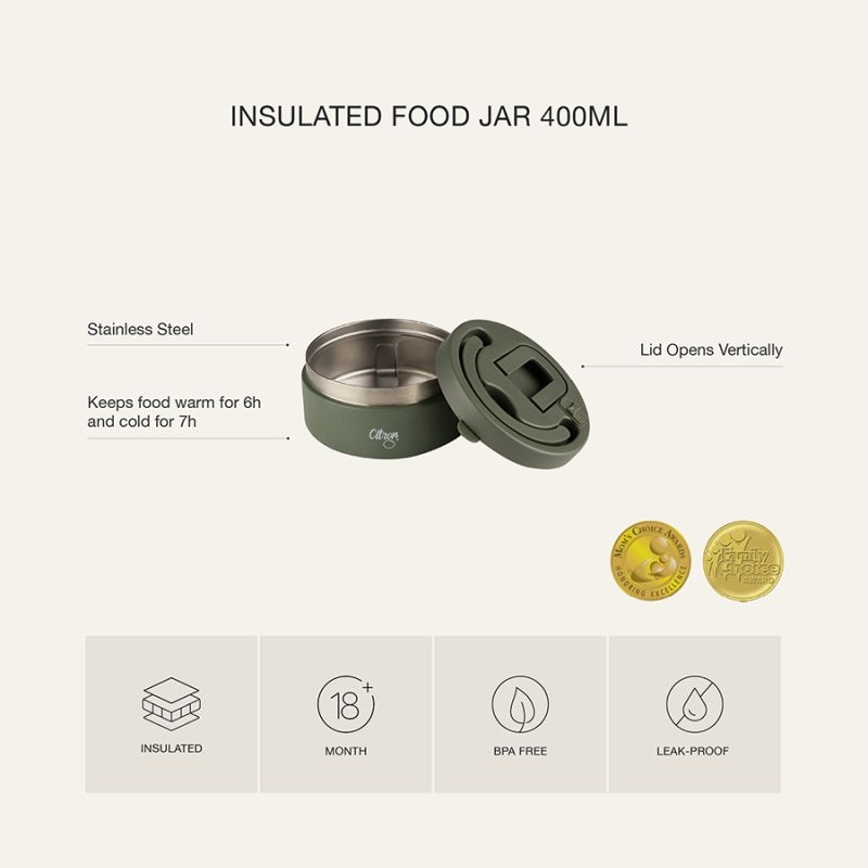 Εξαιρετικής ποιότητας φαγητοδοχείο - θερμός, από την αγαπημένη μας εταιρεία Citron. Το μέγεθός του το καθιστά το ιδανικό σκεύος για μεγαλύτερα παιδιά ή ακόμη και ενήλικες, που θέλουν να μεταφέρουν το γεύμα τους στο σχολείο, τη δουλειά ή το ταξίδι! Διαθέτει τριπλό τοίχωμα ώστε να εξασφαλίζει ότι το φαγητό παραμένει ζεστό για έως και 6 ώρες και κρύο για έως και 7 ώρες. Είναι απολύτως στεγανό για να μην υπάρχει κίνδυνος διαρροής και διαθέτει επένδυση με αφαιρούμενη σιλικόνη για ευκολία στον καθαρισμό. Περιλαμβάνει διαχωριστικό για τη μεριδοποίηση του φαγητού. Διαθέτει ασφάλεια ώστε να μην μπορεί να ανοιχθεί κατά λάθος, και λαβή για ευκολότερη μεταφορά. Πλένεται στο χέρι αφού βγάλετε την επένδυση σιλικόνης. Το φαγητοδοχείο είναι κατασκευασμένο από χάλυβα ποιότητας τροφίμων 304 για μακροχρόνια χρήση. Δεν περιέχει τοξικά υλικά όπως BPA, φθαλικές ενώσεις και μόλυβδο.