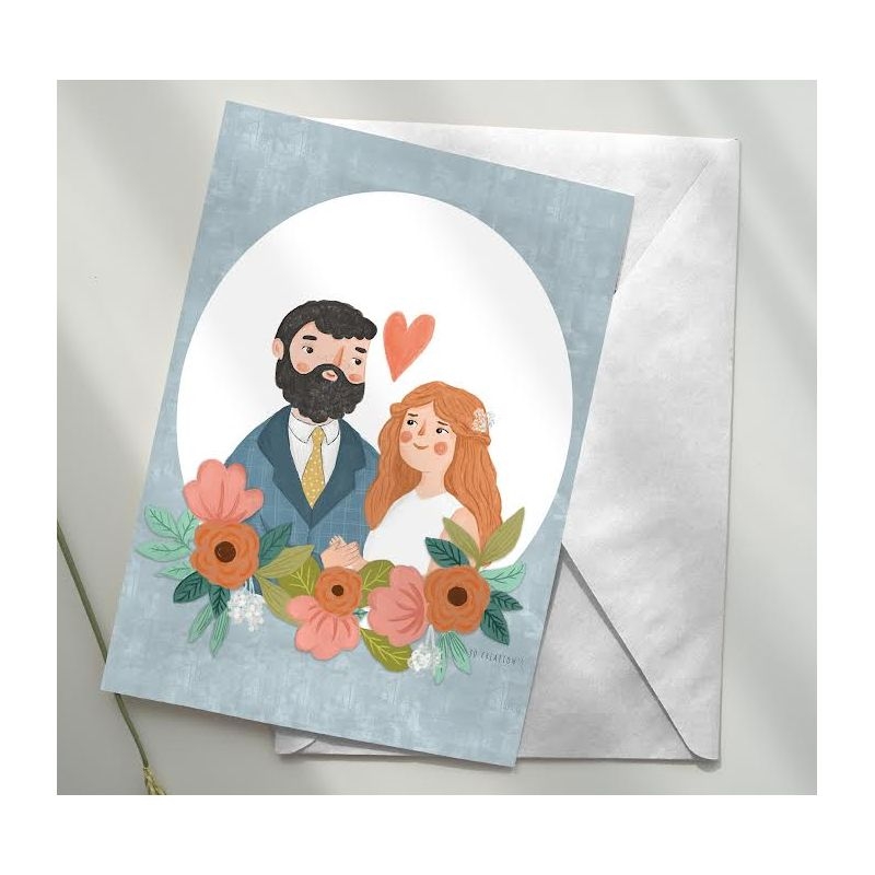 Χειροποίητη ευχετήρια κάρτα τυπωμένη σε χαρτί πολυτελείας ματ 300gr με ένα όμορφο ζευγάρι.  Ιδανική τις ευχές γάμου από την J.o. Creations.