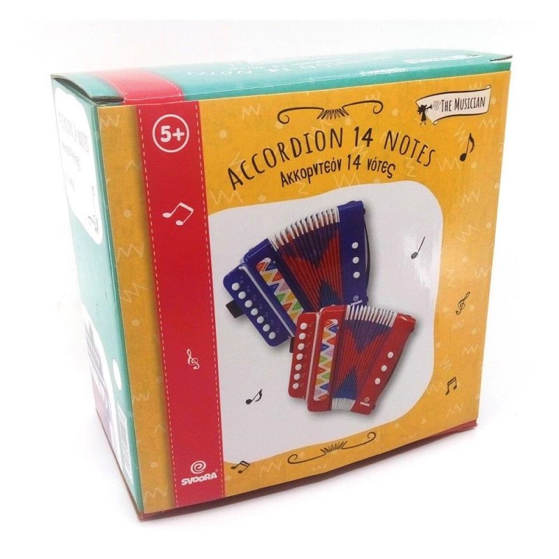 Για την πρώτη επαφή των παιδιών με τη μουσική και τις νότες ένα υπέροχο ακορντεόν σε κόκκινες και μπλε αποχρώσεις. Διαθέτει 7 πλήκτρα και είναι ιδανικό για τις πρώτες μελωδίες των μικρών μας μουσικών.