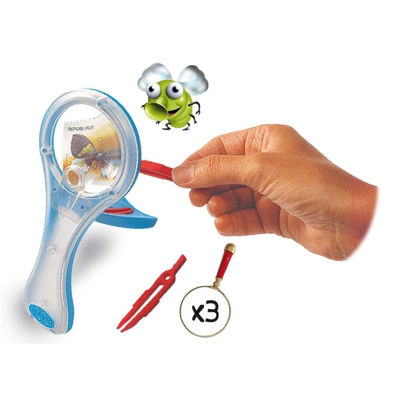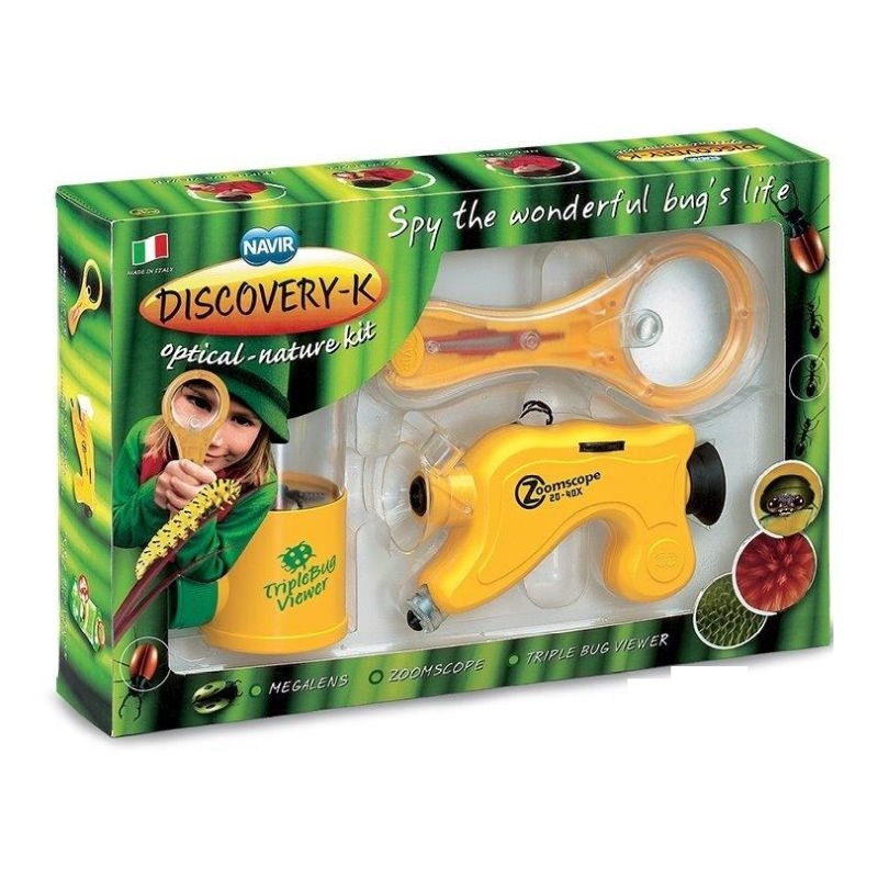 Σετ εξερευνητή της ιταλικής εταιρίας Navir για επίδοξους εξερευνητές της φύσης και της εξοχής. Με μεγεθυντικό φακό που τα μεγενθύνει 3 και 7 φορές, μικροσκόπιο (20-40 φορές μεγένθυσης) και δοχείο που μπορείτε να βάλετε τα έντομα και να τα παρατηρήσετε από 3 πλευρές.