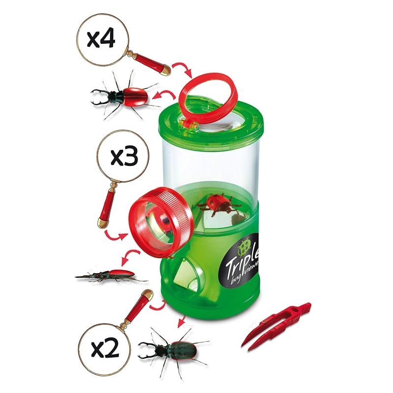Περιλαμβάνει: Μεγεθυντικό φακό, μικροσκόπιο, τριπλό εντομοσκόπιο και λαβίδα.