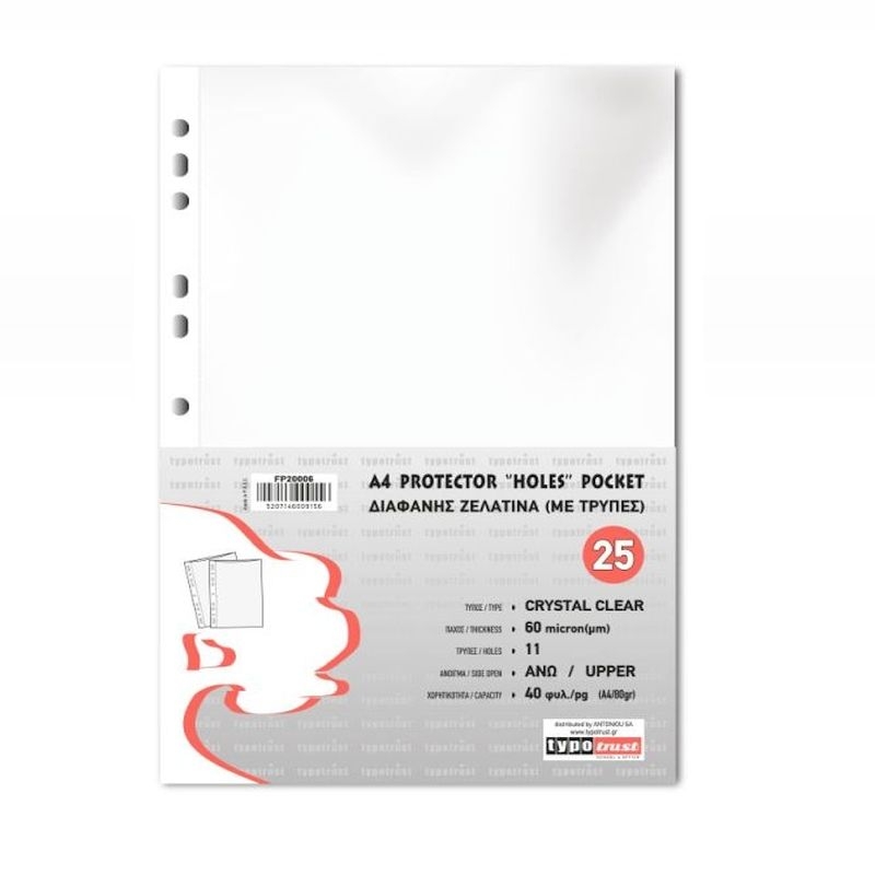 Ζελατίνες αρχειοθέτησης Α4 - Διάφανη (25τμχ./0.06mm) - Typotrust
