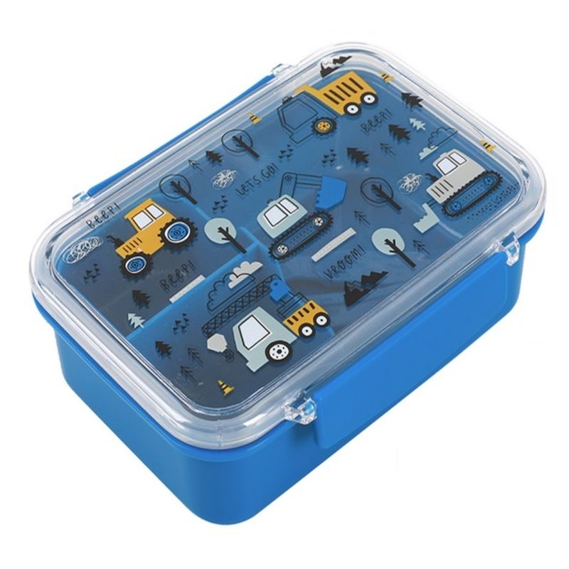 Όμορφο και πρακτικό φαγητοδοχείο της I-drink, με σχέδιο φορτηγά στο καπάκι.