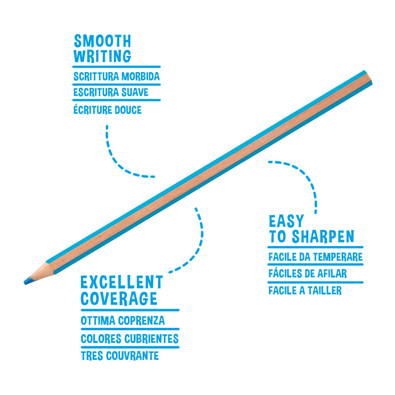 Ξυλομπογιές άριστης ποιότητας από την Carioca με μύτη πάχους 3mm. Η νέα σειρά οικολογικών, εξάγωνων ξυλομπογιών από συνθετική ρυτίνη. Διαθέτουν εξαγωνικό σχήμα, ζωηρά χρώματα και μαλακή γραφή. Είναι ασφαλείς και ανθεκτικές στην πτώση, ευκολόξυστες και δεν δημιουργούνται ακίδες αν σπάσουν.