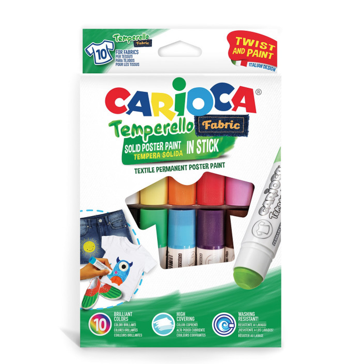 Στερεά τέμπερα σε μορφή μαρκαδόρου για ύφασμα 10 χρωμάτων - Carioca Temperello Fabric
