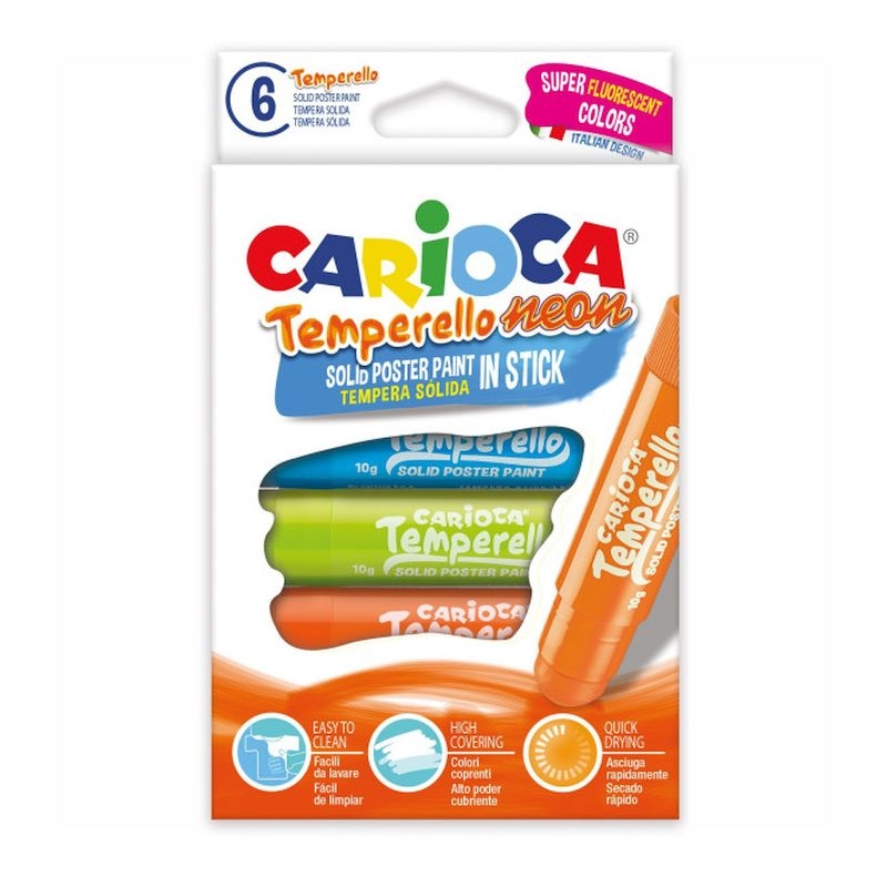 Στερεά τέμπερα σε μορφή μαρκαδόρου 6 Neon χρωμάτων - Carioca Temperello